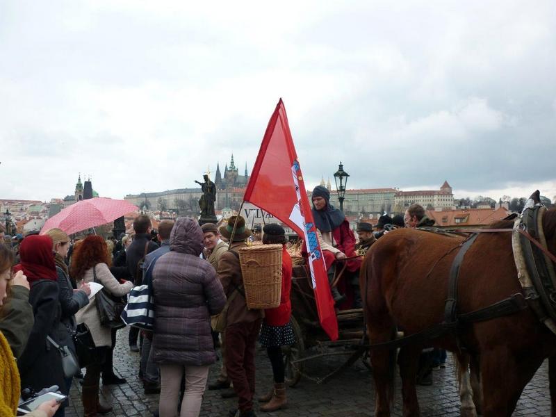 Přivítání a pobyt velvaráků na Karlově mostě dne 21.3.2016