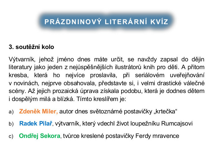 na Vaše odpovědi se těšíme na e-mailu knihovna@velvary.cz nebo zavolejte do knihovny na tel. č. 315 761 312.
