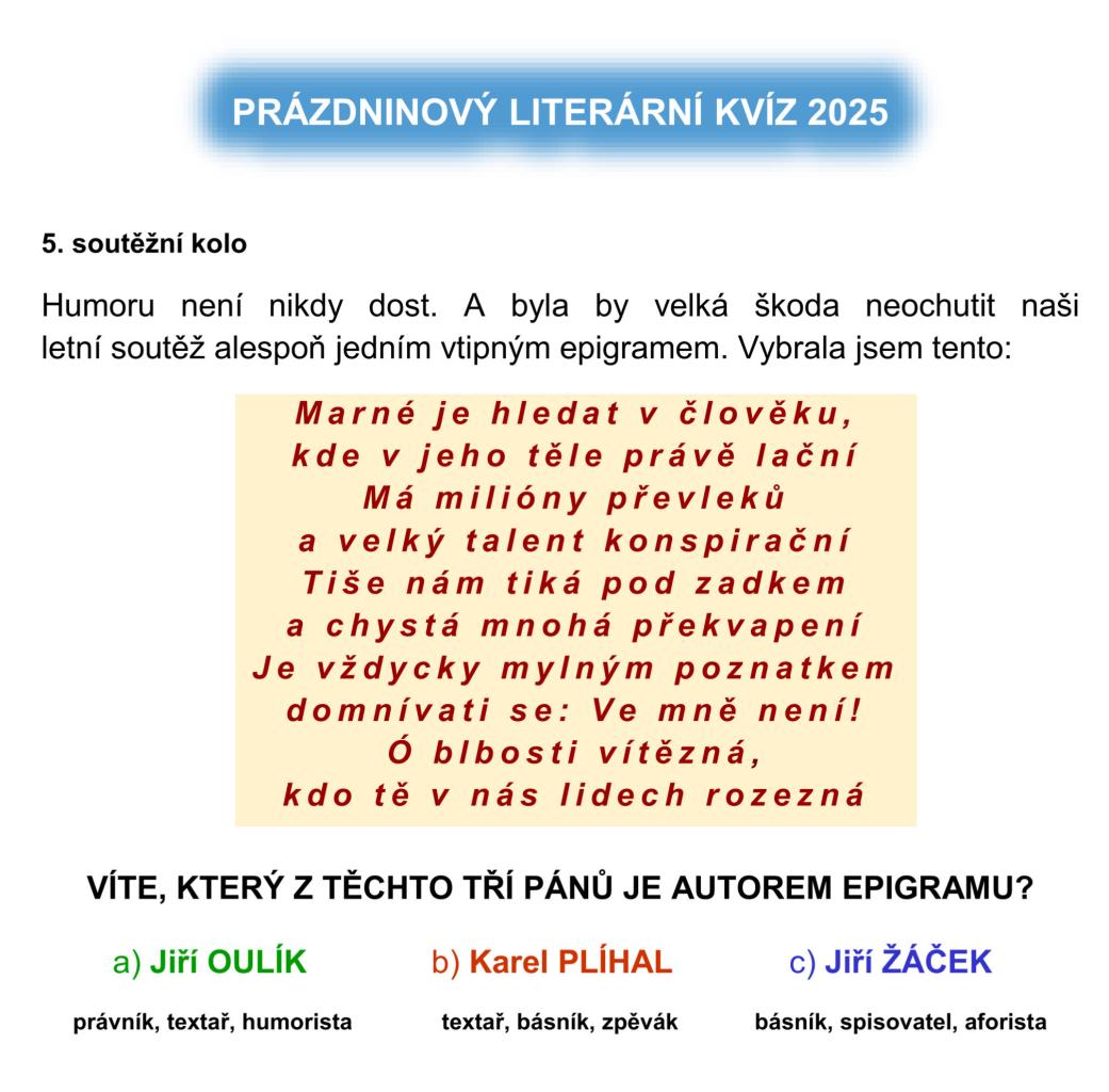 Přinášíme 5. a 6. kolo letní kvízové soutěže.