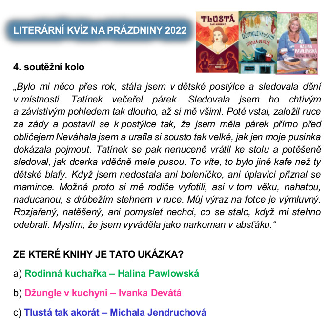 Správné odpovědi budeme sčítat a na konci prázdnin vyhlásíme