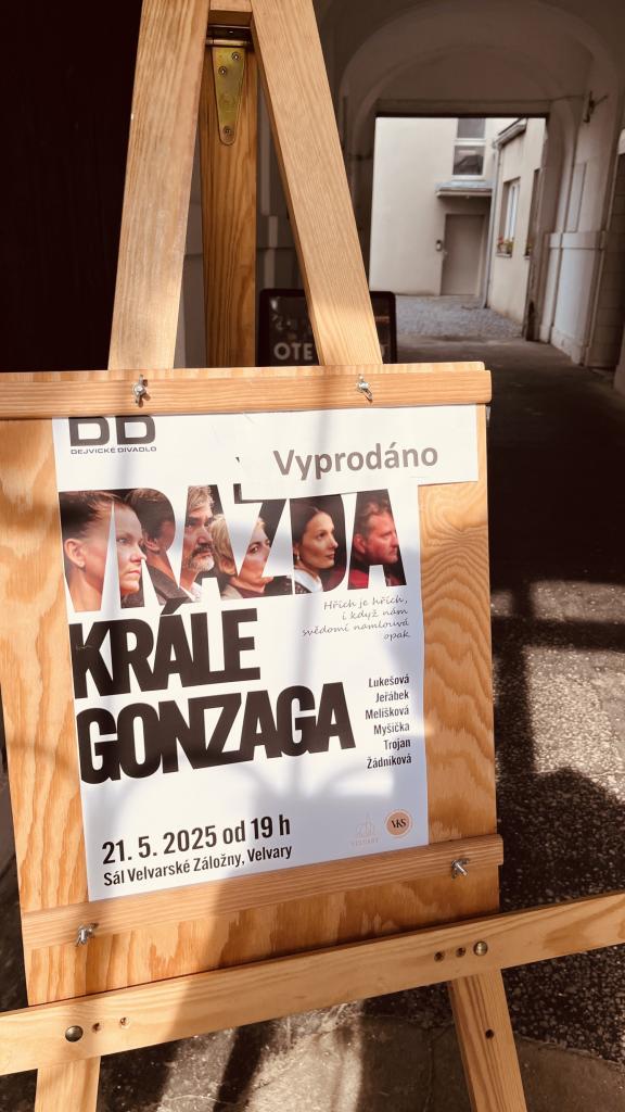 Děkujeme všem divákům za hojnou návštěvu Velvaské Záložny, kde ve středu 21. 5. prvně v historii hostovalo Dejvické divadlo s inscenací Vražda krále Gonzaga. V článku najdete též několik fotografií z akce.