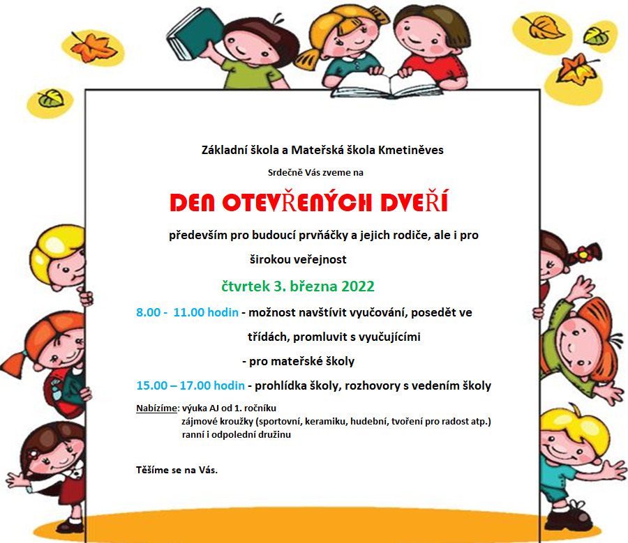 Den otevřených dveří v základní a mateřské škole v Kmetiněvsi.