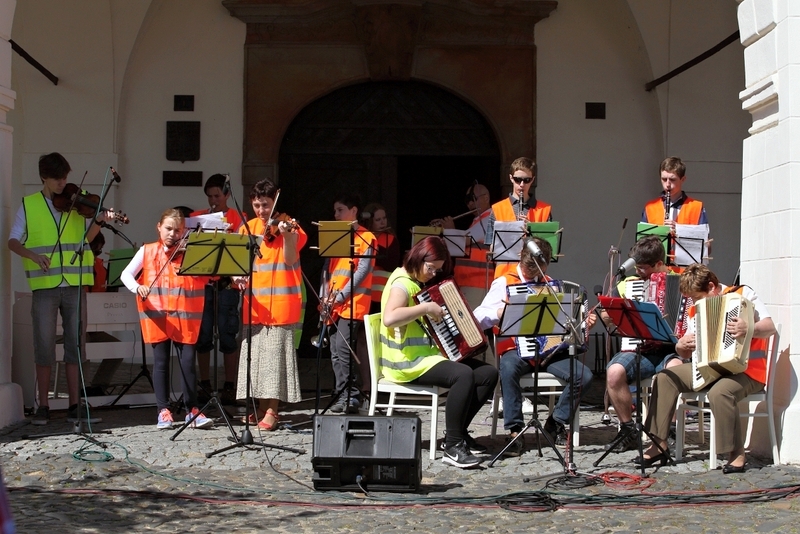 Na akci zahrála i muzika Základní umělecké školy z Velvar, jejíž členové si oblékli "řidičské reflexní vesty".