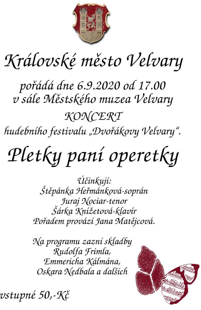 Koncert hudebního festivalu "Dvořákovy Velvary" v neděli 6. 9. 2020