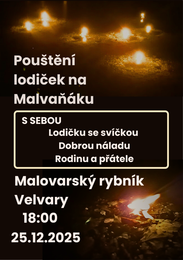 Pouštění lodiček se svíčkou na Malvaňáku ve čvrtek 25.12.2025 v 18:00 hodin.
