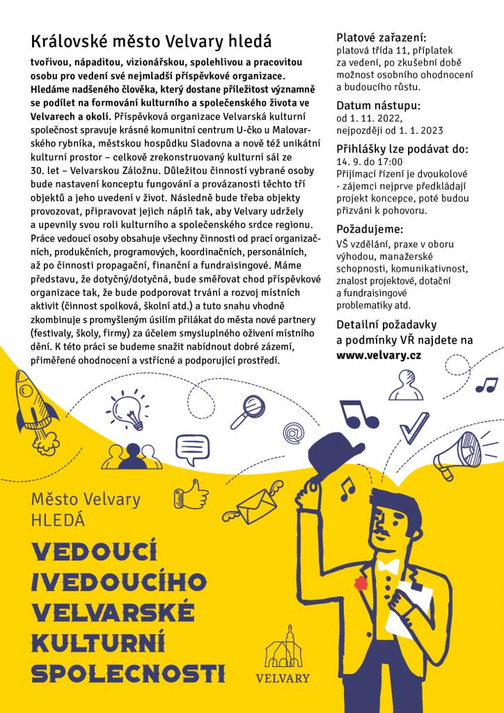 Město Velvary hledá vedoucí/ho Velvarské kulturní společnosti