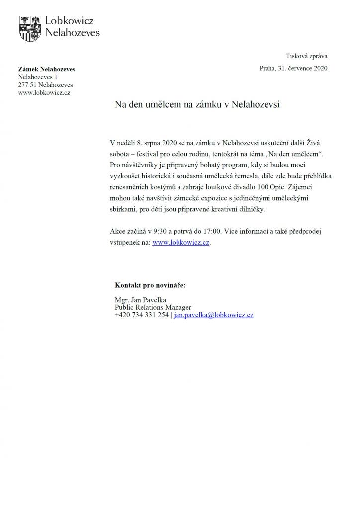 Na den umělcem - akce na zámku v Nelahozevsi 8. 8. 2020