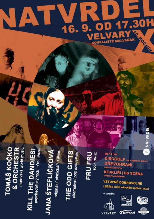 Desátý ročník velvarského (nejen) hudebního festivalu se bude konat v sobotu 16. září v krásném prostředí přírodního koupaliště Malvaňák v prostorném šapitó. Už odpoledne si můžete přijít zahrát s celou rodinou dřevohry, vyzkoušet discgolf, shlédnout divadelní představení nebo jen tak posedět, popít, vykoupat se, poklábosit, dát si dobrý čaj či kávu v samostatném čajovém stanu. Celý festivalový program je zdarma! Přispět můžete pouze dobrovolným vstupným, které do poslední koruny poputuje na účet Spolku Laura. Přispějete tím tak na nutné rehabilitace velvarským dětem s dětskou mozkovou obrnou.