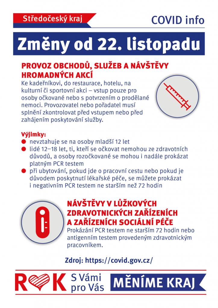 Nová opatření platící od pondělí 22. 11. 2021 v souvislosti s Covid-19