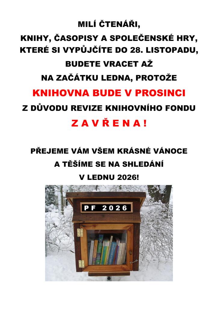 od 1. 12. 2025 do 2. 1. 2026 bude knihovna uzavřena