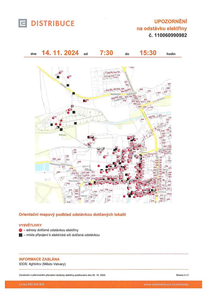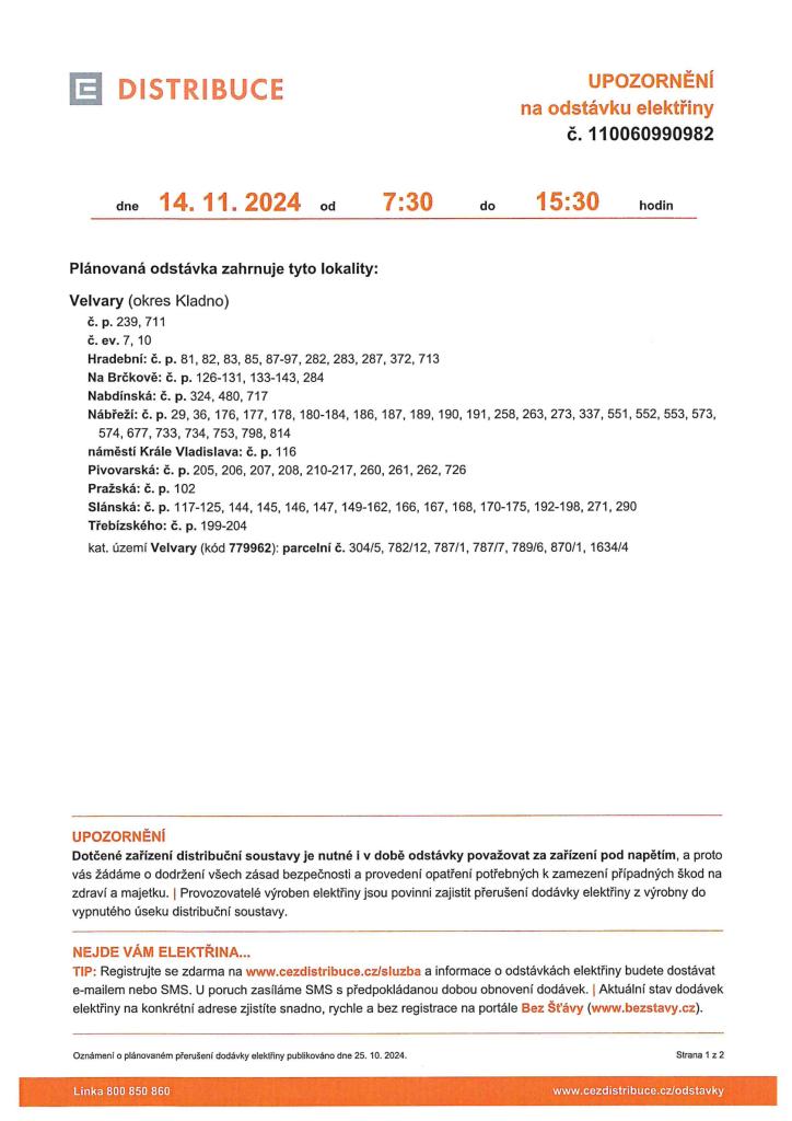 ODSTÁVKA ELEKTŘINY 14.11.2024
