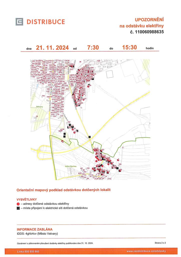 ODSTÁVKA ELEKTŘINY 21.11.2024