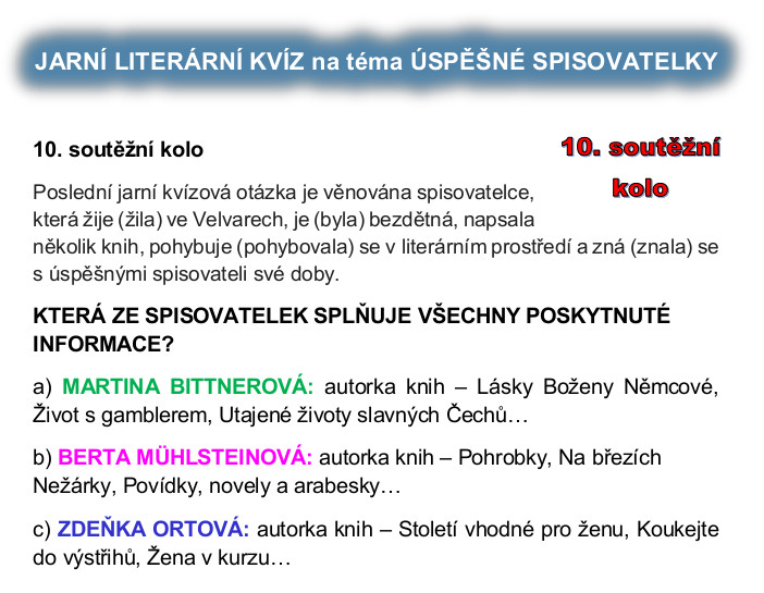 Dnes se neloučíme. Jednak příští týden vyhlásíme vítěze a uveřejníme správné odpovědi, ale zároveň se můžete těšit na soutěž letní, na které již pracuji.