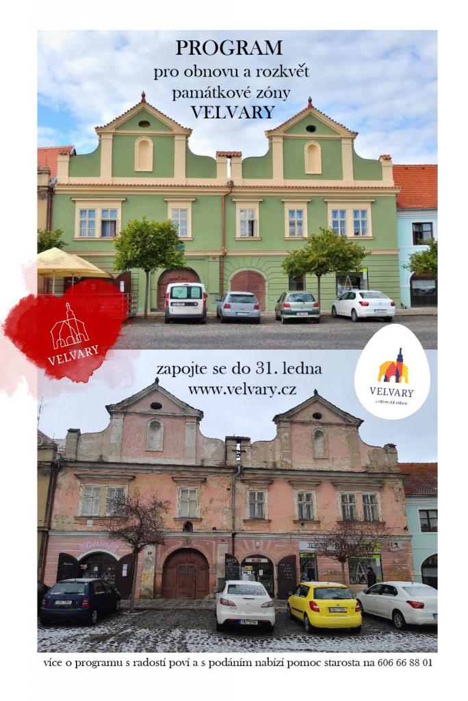 Již třetím rokem je možné zažádat o podporu na opravu nemovitosti v památkové zóně města Velvary. Město se programem snaží motivovat majitele nemovitostí k opravám svých domů v souladu s pravidly památkové péče, protože je tento postup pečlivější a finančně náročnější, nabízí finanční podporu. Žádosti se podávají do 31. ledna - více o programu v článku.