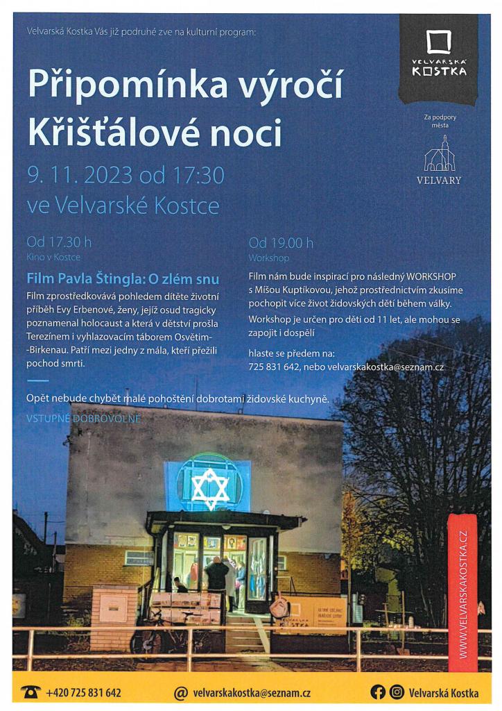 Velvarská Kostka Vás již podruhé zve na kulturní program Připomínka Křišťálové noci ve čtvrtek 9. listopadu