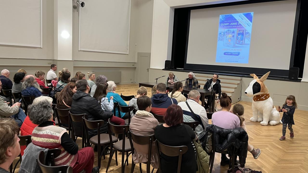 Děkujeme moc autorovi příběhů o Gumpovi Filipu Rožkovi, panu režiséru a měšťanu velvarskému panu F. A. Brabci, milé paní Rožkové a hlavně pejskovi Gumpovi a jeho parťačce Jenny za milý podvečer, při kterém jsme se dozvěděli hodně z natáčení jedničky a dvojky a hlavně díky dobrému rozpoložení všech hostů byla i psina!