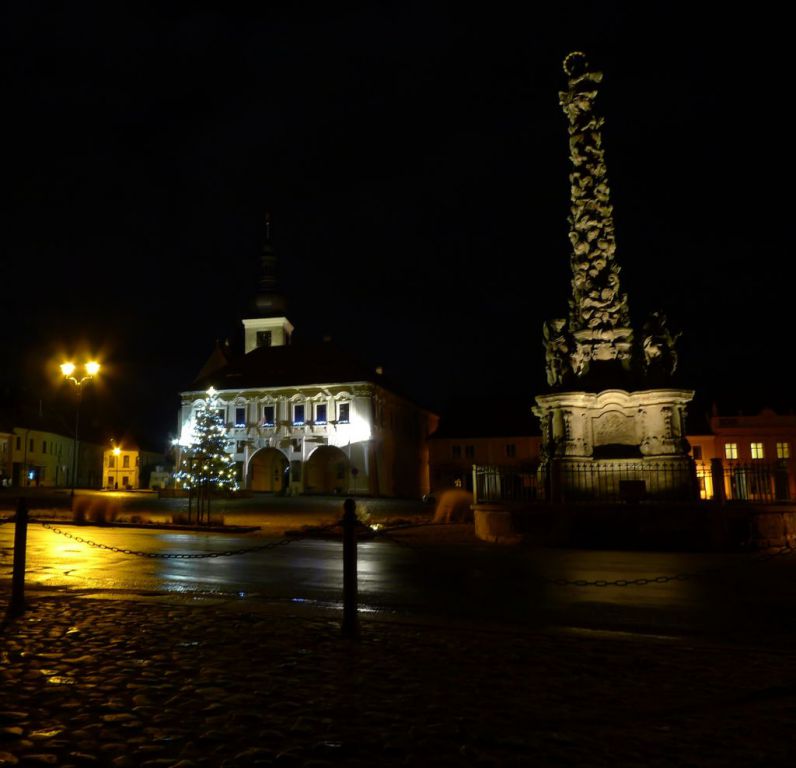 Jeden z mála okamžiků v roce, kdy na náměstí není žádné auto, jsem zkusil využít s foťákem, když vše krom vichru utichlo, po půlnoci, bylo až ku podivu, jak klidné bylo náměstí, které několik hodin před tím pojalo téměř celé město...