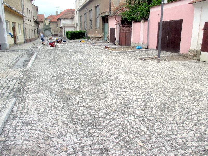 Firma Commatel-Uher s.r.o. pokračuje v rekonstrukci Růžové ulice. Příslib, že bude ukončena do konce měsíce června, dostává reálnou podobu, pokud se nenarazí na nějaké další komplikace. Přinášíme průběžné fotografie z výstavby.