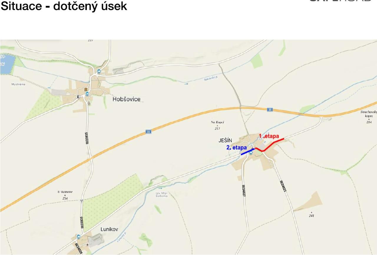 I. etapa 20.9. – 3.10. – silnice ŘSD č. I/16 (úsek od centra Ješína na kraj obce směrem na Velvary)