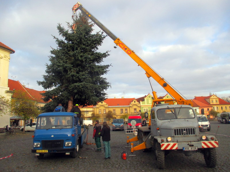 Stavba vánočního stromu na našem náměstí je každoročně předzvěstí adventu a blížících se vánočních svátků. Letošní strom, zelený vzrostlý smrk, daroval městu pan Antonín Ledvinka z Velvar, kterému srdečně děkujeme.