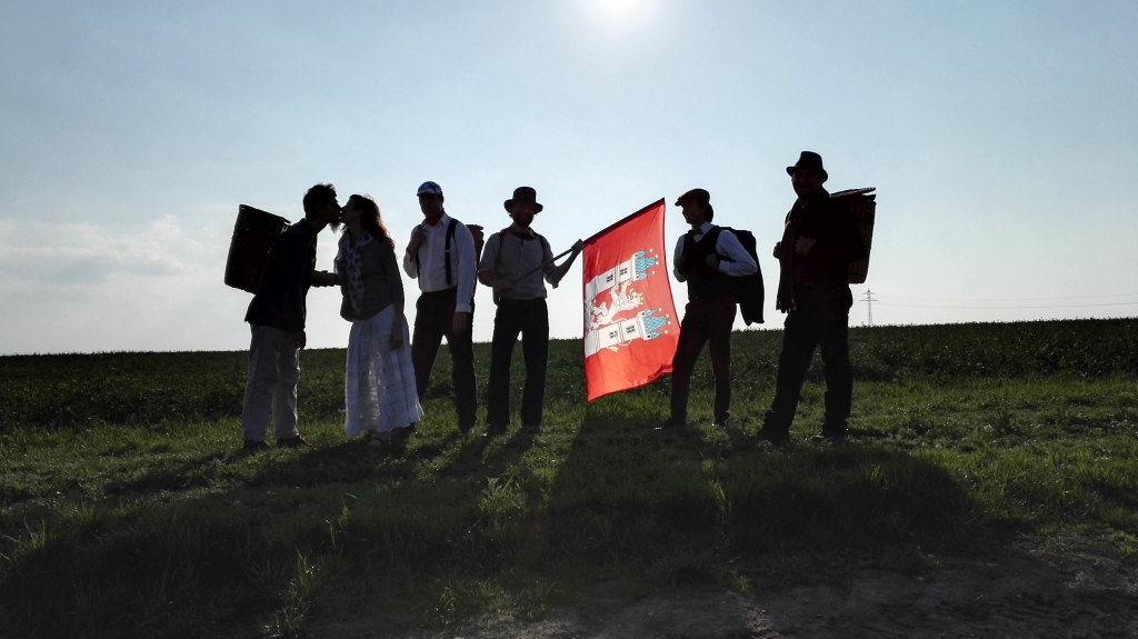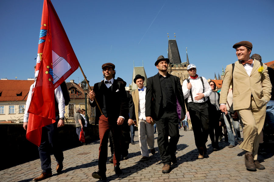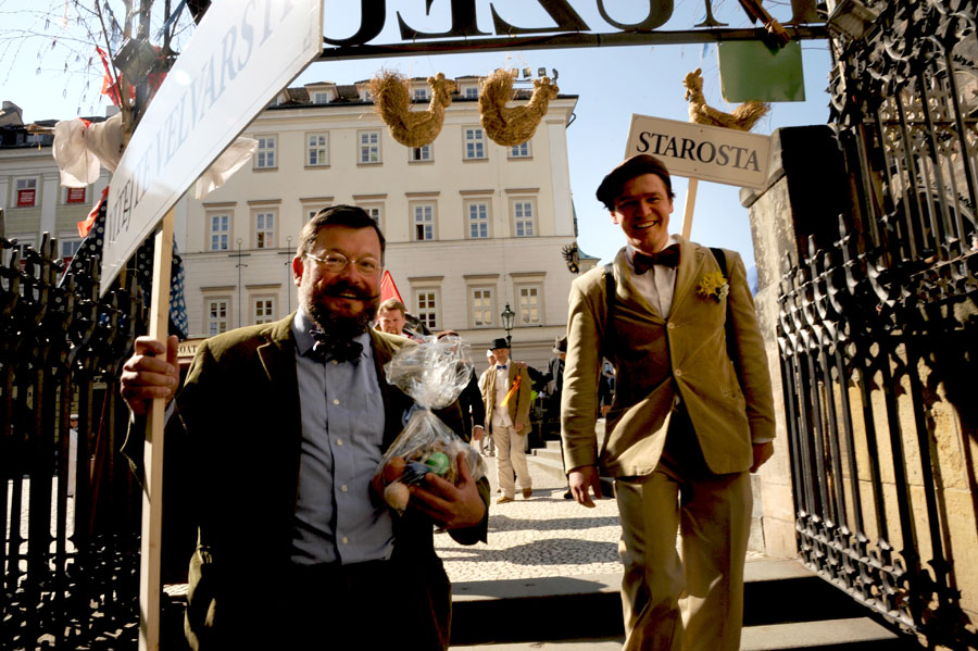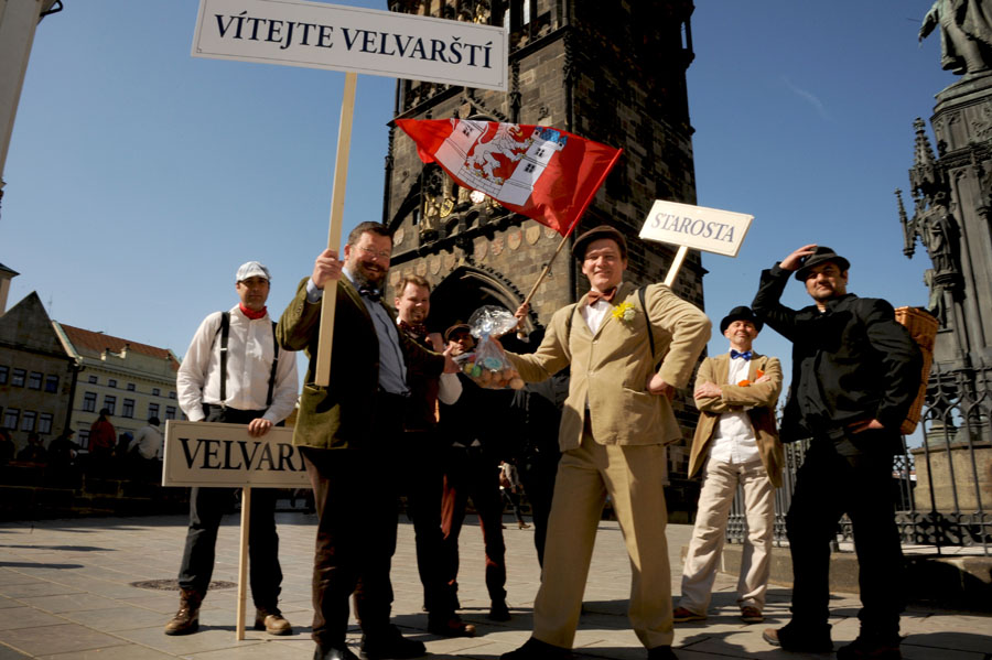 Přikládáme několik fotografií z cesty velvarských vajec na Karlův moc, kde je převzal od našeho purkmistra direktor Muzea Karlova mostu a převozník pražský pan Bergman. Nočního čtyřicetikilometrového pochodu se zúčastnili i starostové Kralup a Klecan, což je jasný důkaz toho, že tvrdovaječnictví je jediným rozumným světonázorem, který okolní obce obdivují.