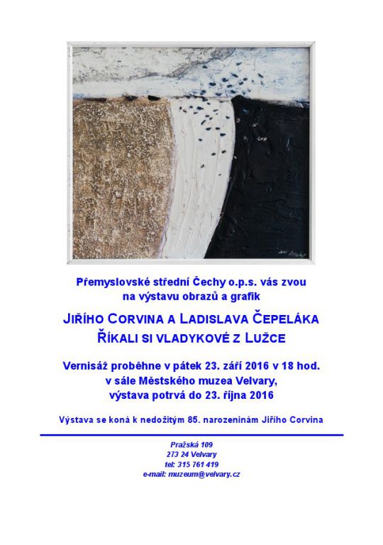 Přemyslovské střední Čechy o.p.s. Vás zvou na výstavu obrazů a grafik J.Corvina a L. Čepeláka "Říkali si Vladykové z Lužce". Součástí vernisáže bude křest jubilejní 10.publikace, vydané společností Přemyslovské střední Čechy s názvem "Říkali si Vladykové". (ls)