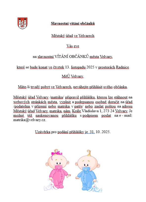 VÍTÁNÍ OBČÁNKŮ - 13. LISTOPADU 2025