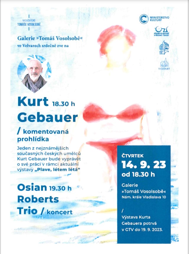 Ve čtvrtek 14.9.2023 od 18:30 hodin v Galerii Tomáše Vosolsobě bude jeden z nejznámějších současných českých umělců Kurt Gebauer vyprávět o své práci v rámci aktuální výstavy "Plave, létem létá"