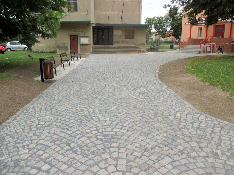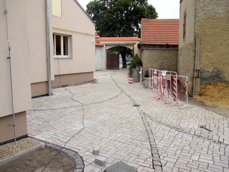 Po slavnostním otevření budov Školní družiny a Sokolovny se pokračuje na úpravách přístupových cest, zajišťuje stavební firma J.Rotta z Velvar. Před sokolovnou a bývalým kinem je úprava prakticky hotova, chybí pouze propojovací chodník ke školní jídelně. Ve dvoře družiny pokračuje pokládka dlažby a zahradní úpravy již za provozu družiny. Také tyto náklady hradí město plně ze svého rozpočtu. (ls)
