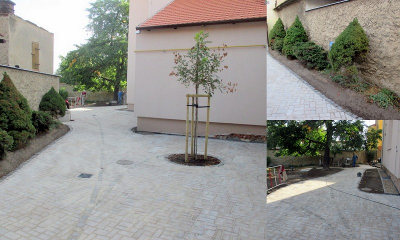 Ve dvoře družiny čp.268 se dokončil chodník, byl zasazen strom a pokračuje se v dalších dohodnutých úpravách.