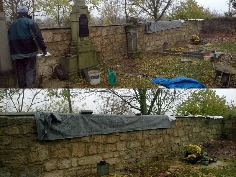 V zadní části horního hřbitova pokračuje další etapa opravy hřbitovní zdi, která je v nevyhovujícím stavu. Opravu provádí pan Dörfl z Kralup n/Vlt., který prováděl již předchozí opravy zdí. (ls)