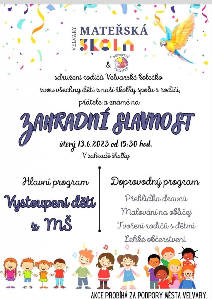 Zahradní slavnost v MŠ pro nepřízeň počasí PŘESUNUTA na 13. 6. 2023