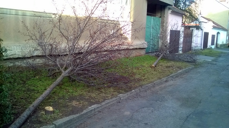 Neznámý "šílenec" podřízl tento týden postupně 2 stromy v Růžové ulici. Jedná se o jabloně (Malus Mokum) z první adopce stromů v roce 2010!