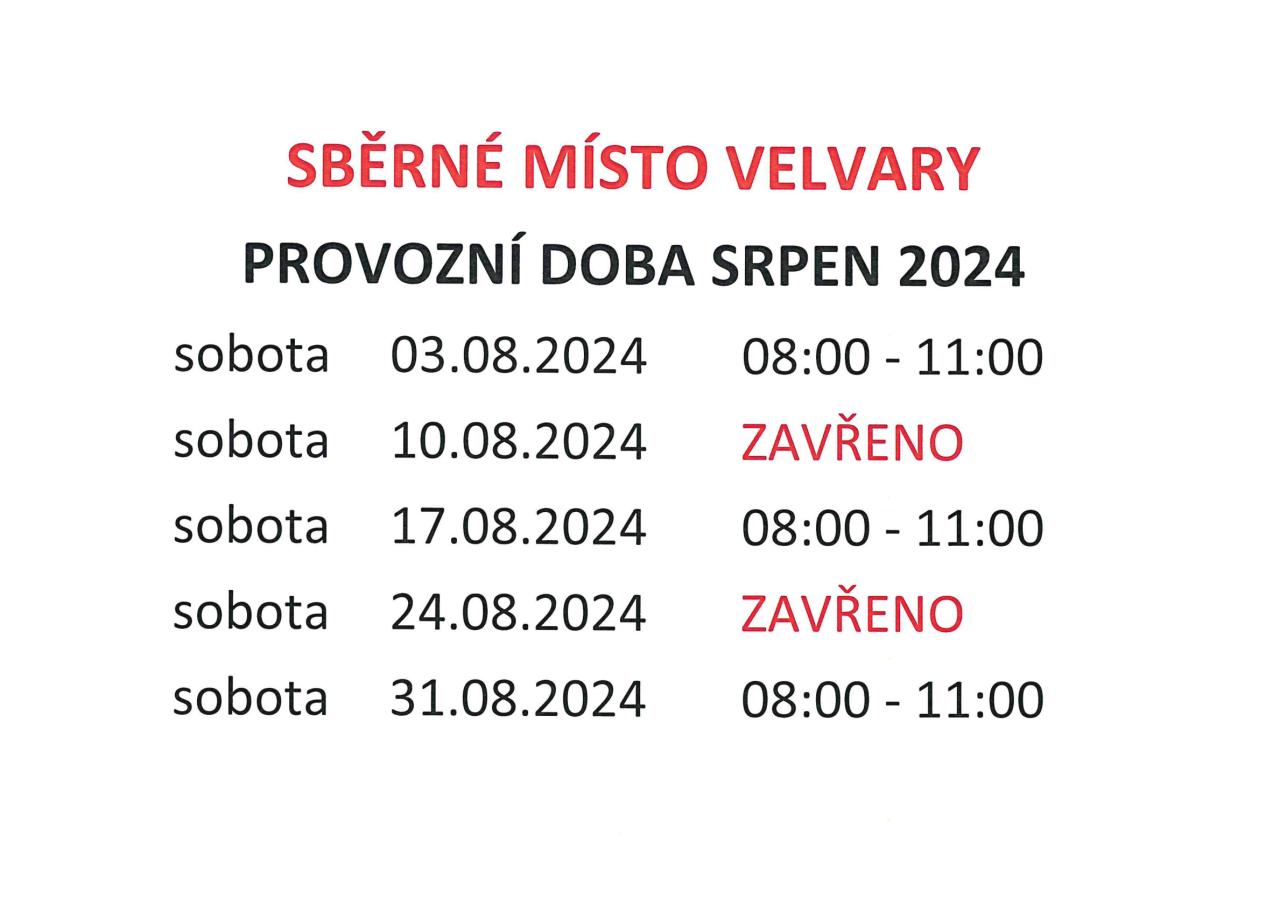 Upozorňujeme, že v sobotu 24.8.2024 bude z provozních důvodů uzavřeno sběrné místo.