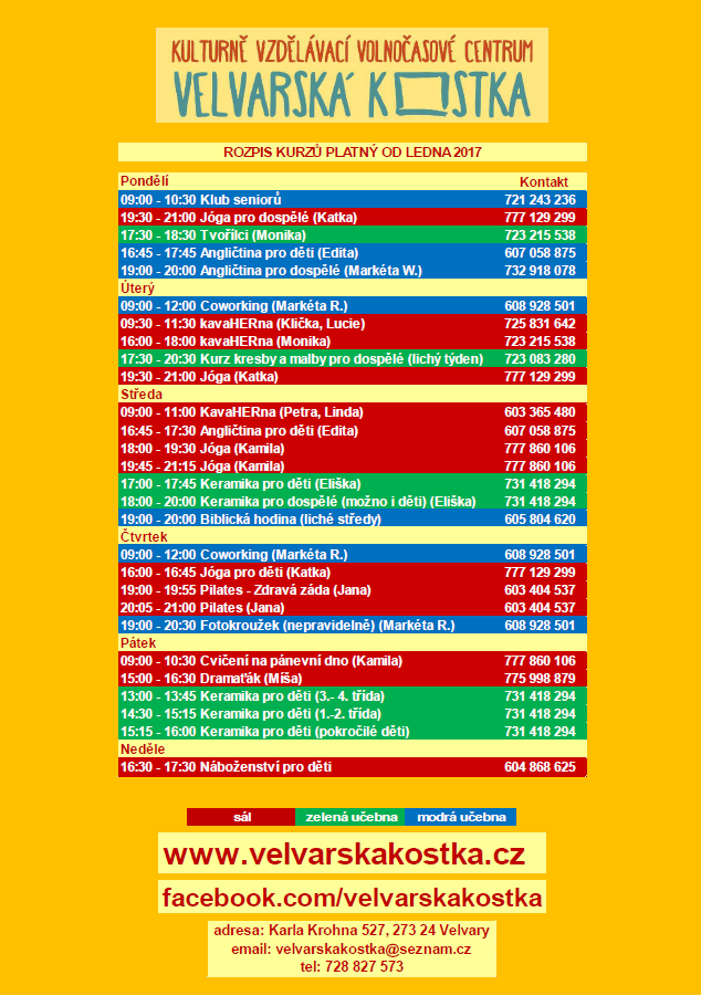 Aktualizovaný rozpis kurzů je zde ke stažení