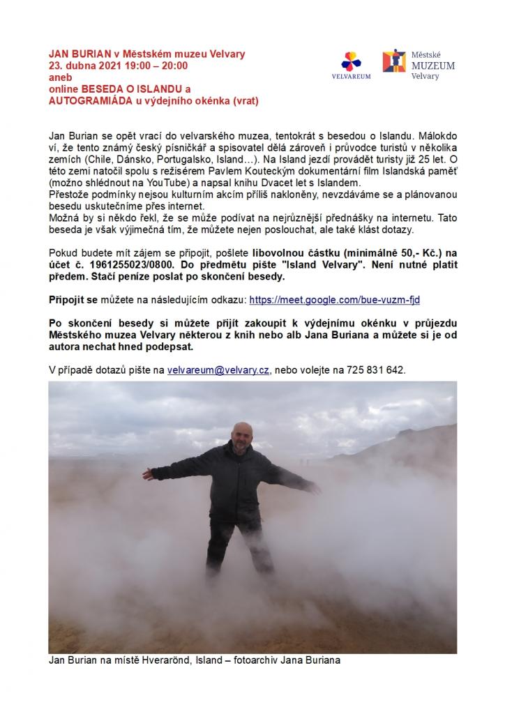 Online beseda o Islandu a autogramiáda - Jan Burian v Městském muzeu Velvary