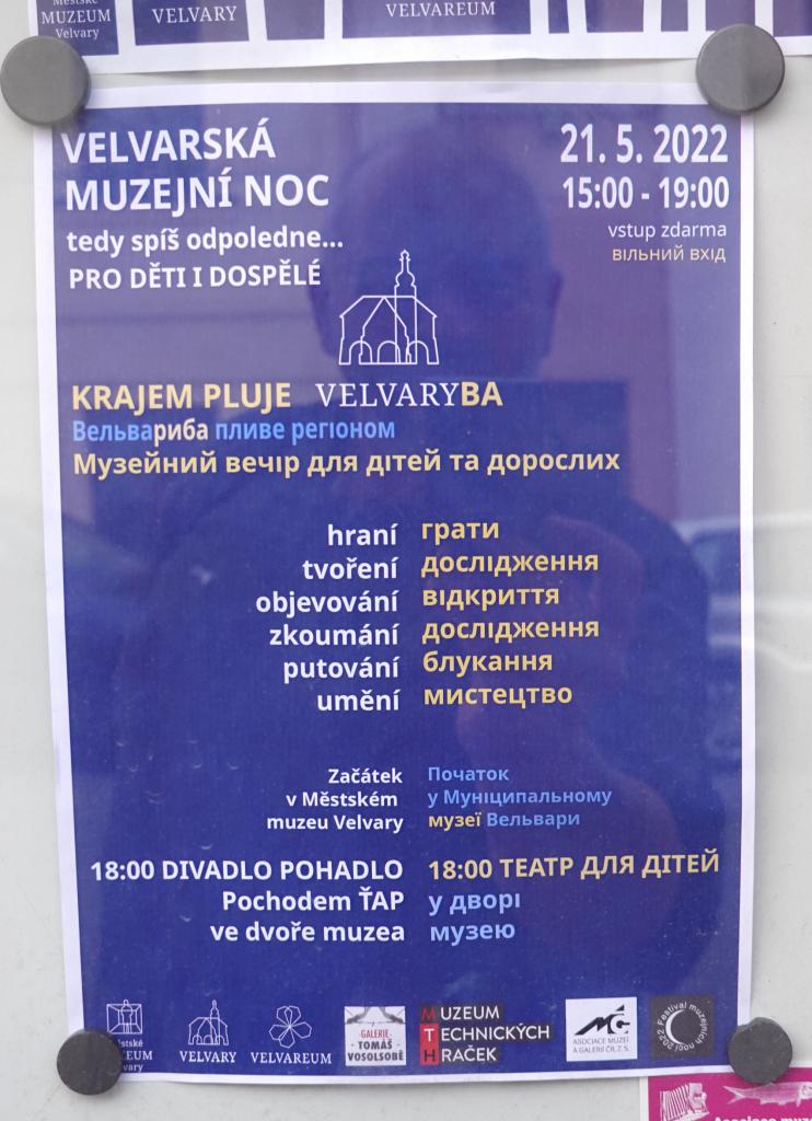 Městské muzeum Velvary se jako každoročně přihlásilo do celorepublikového Festivalu muzejních nocí, který se odehrává zhruba od poloviny května do konce června. V sobotu 21. 5. se ve Velvarech uskutečnila rozsáhlá akce pořádaná Městským muzeem Velvary. Koncepci události a program připravilo velvarské kulturně edukační centrum Velvareum. Ve většině měst se muzea a galerie při tomto festivalu otevírají pro veřejnost ve večerních hodinách. My jsme se již před lety rozhodli, že akci uspořádáme po svém, a protože chceme, aby tato událost oslovila nejen dospělé, ale i děti, vyhlásili jsme i tentokrát začátek na třetí hodinu odpolední.